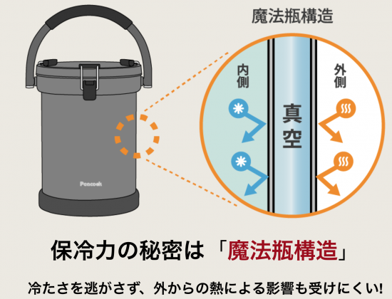 魔法瓶構造のクーラーボックス。